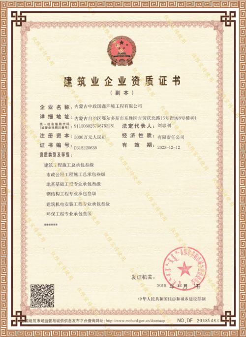 公司:內蒙古中政國環工程顧問有限公司